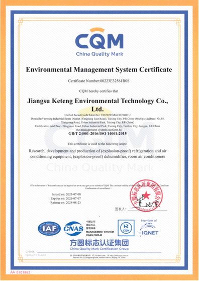 环境管理体系认证证书 英文